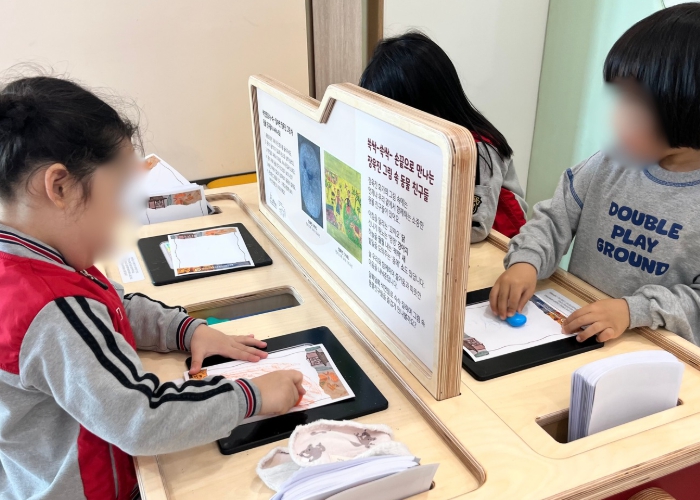 전시물은 장욱진 작가의 작품 속 동물 이미지를 모티브로 한 프로타쥬(Frottage, 문지르기 기법) 체험으로 유아들은 다양한 재질의 표면을 탐색하고 그 질감을 종이에 전이시키는 과정을 통해 형태와 감각을 손끝으로 느끼며 그림 속 동물 친구들을 새롭게 표현하는 놀이 기반 예술 체험을 즐길 수 있다.