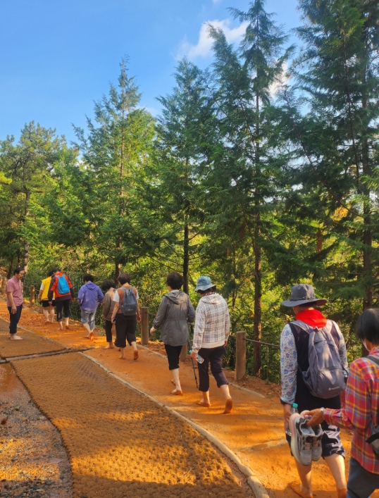 이어 2부에서는 봉대미숲 황톳길로 이동해 약 1.4km 구간을 맨발로 걸으며 숲속 자연환경을 오감으로 체험했다.