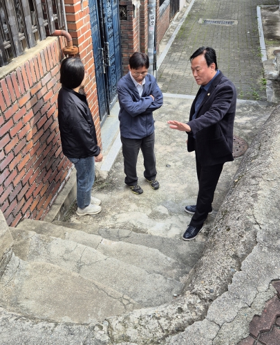 [뉴스앤톡] 심재억 강북구의회 도시복지위원장은 지난 2025년 10월 21일, 송천동 내 파손된 계단이 있는 골목길(삼양로22길12 앞)을 강북구 도로관리과 담당자와 방문하고 시설 개선을 촉구했다.