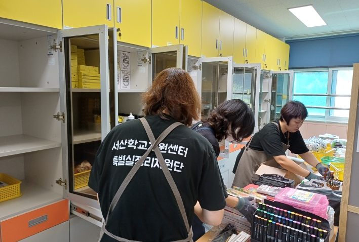 | ▲ 서산교육지원청 학교지원센터, 성연중 미술실 정리 지원 |