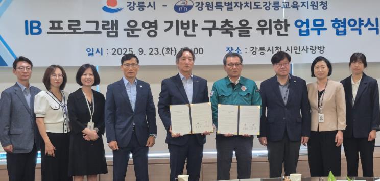 [뉴스앤톡] 강릉교육지원청은 23일 오전 10시, 강릉시청에서 강릉시와 국제 바칼로레아(IB) 교육 프로그램 도입 및 운영을 위한 업무 협약을 체결했다.