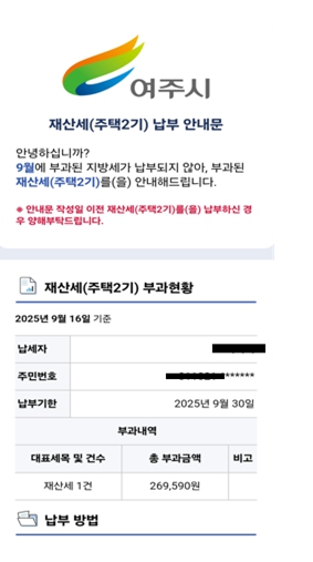 특히 이번 9월 재산세 알림톡에는 단순한 지방세 납부 안내를 넘어 전자문서 하단에 배너를 이용하여 여주시 대표 축제인 “오곡나루 축제” 홍보 동영상을 삽입하여 시민들이 지방세 납부 안내와 함께 축제 정보를 자연스럽게 접할 수 있도록 했다.