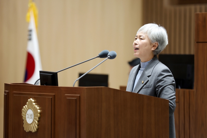 | ▲ 윤경선 수원특례시의회 의원이 제399회 임시회 제1차 본회의에서 5분 자유발언을 하고 있다 |