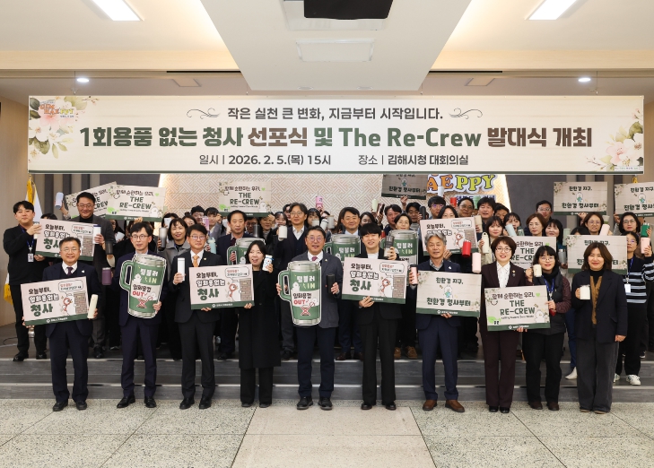 [뉴스앤톡] 김해시는 5일 오후 3시 대회의실에서 ‘1회용품 없는 청사’ 선포와 함께 자원순환 실천 조직인 ‘The Re-Crew’ 발대식을 개최했다.