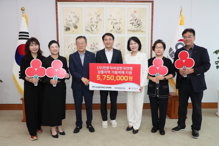 [뉴스앤톡] 강원특별자치도는 9월 23일, (사)전문직여성 한국연맹 최예담회장이 도청을 방문해 강릉 가뭄피해 지원을 위한 기부금(5,750,000원)을 전달했다고 밝혔다.