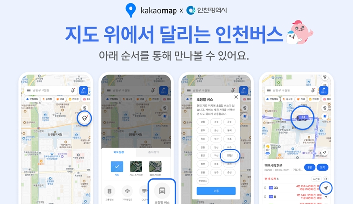 [뉴스앤톡] 인천광역시는 오는 9월 30일부터 카카오맵을 통해 실시간(초정밀) 버스 위치 서비스를 제공한다고 밝혔다.