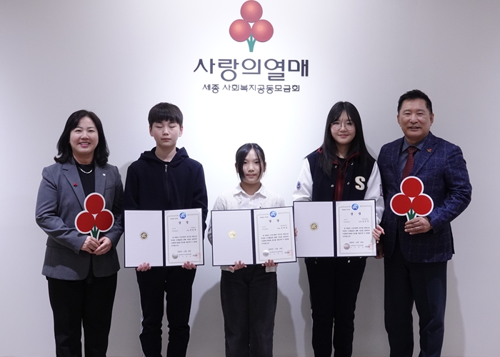 [뉴스앤톡] 세종사랑의열매는 19일 오후 4시 세종사랑의열매 전달식장에서 세종시교육청과 함께 ‘2025 세종시 나눔실천 학생 교육감 표창장 전달식’을 열고, 지역사회 나눔문화 확산에 기여한 학생 3명에게 봉사상 교육감 표창장을 수여했다.