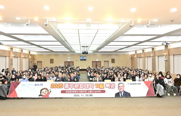 [뉴스앤톡] 울산 중구가 11월 20일 오후 1시 30분 중구청 대회의실에서 2025년 중구문화대학 11월 주민특강을 개최했다.