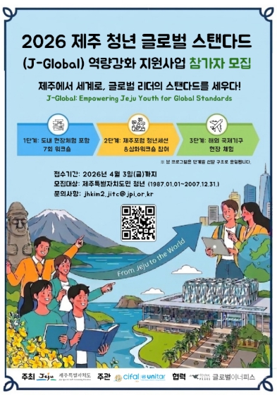 양기철 제주도 기획조정실장은 “국제무대를 꿈꾸는 제주 청년들이 체계적으로 글로벌 역량을 키울 수 있도록 지원하기 위해 이번 사업을 마련했다”며 “많은 관심과 참여를 기대한다”고 말했다.