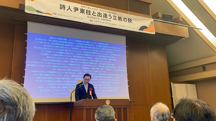 [뉴스앤톡] 임태희 경기도교육감이 11일 일본 도쿄 릿쿄대학에서 열린 ‘윤동주 시인 서거 80주년 기념 시낭송 대회 및 기념비 제막식’에 참석했다.