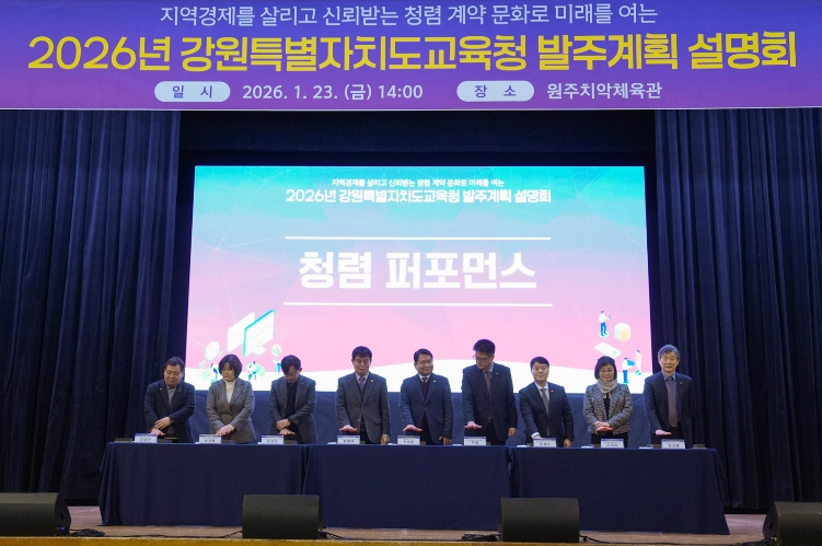 [뉴스앤톡] 강원특별자치도교육청은 23일 원주 치악체육관에서 청렴한 계약문화 확산과 지역경제 상생을 위한 ‘2026년 공사·용역·물품 발주계획 설명회’를 개최했다.