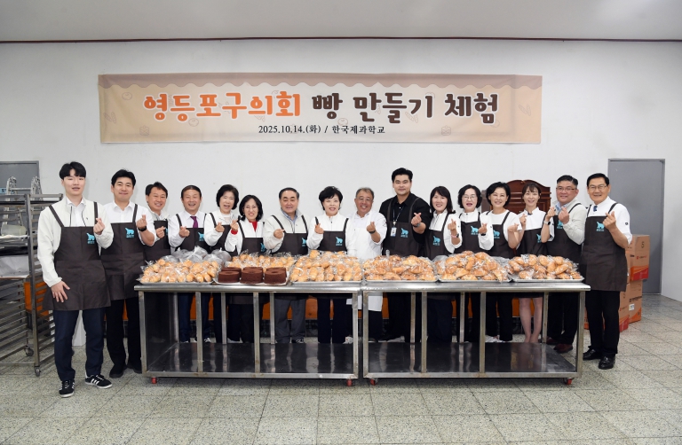 [뉴스앤톡] 영등포구의회는 14일 신길동 소재 한국제과학교에서 제빵 과정을 체험하고 완성한 빵 300여 개를 관내 지역아동센터 등에 전달했다.