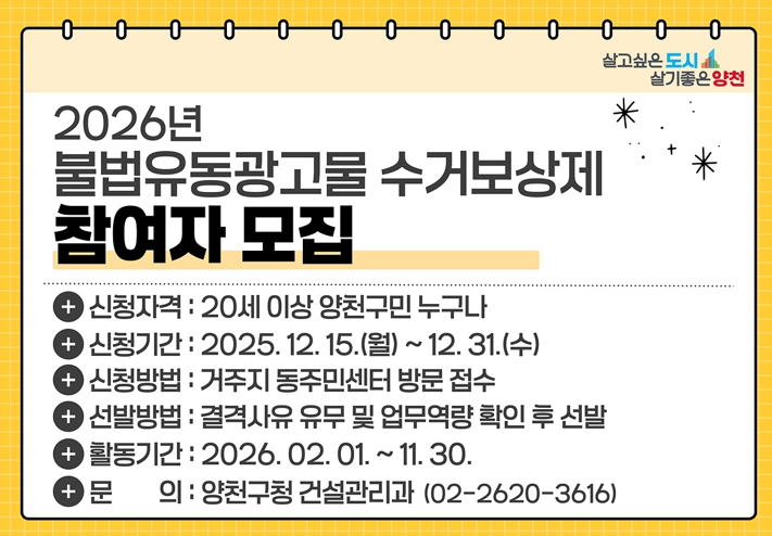 | ▲ 양천구, 불법광고물 수거보상제 참여자 모집 안내 이미지 |