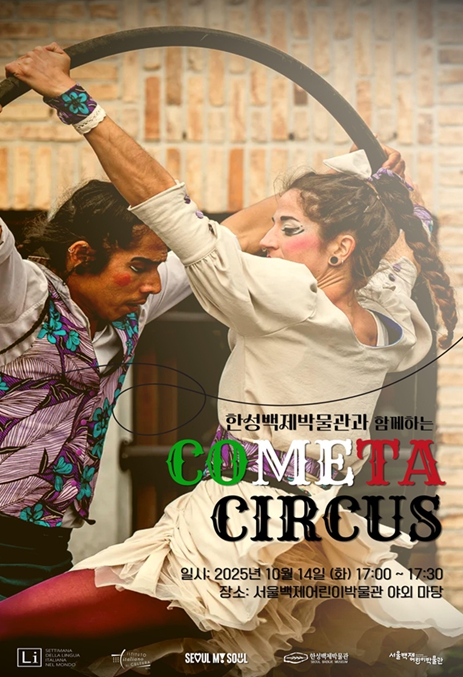 가을의 정취가 완연해지는 계절을 맞아, 한성백제박물관에서는 야외에서 온 가족이 함께 즐길 수 있는 '한성백제박물관과 함께하는 COMETA CIRCUS'를 10월 14일(화) 17시에 서울백제어린이박물관 야외마당에서 진행한다. 코메타 서커스만의 감성과 유머가 녹아든 저글링, 아크로바틱, 시르 휠 공연을 통해 온 세대가 함께 즐길 수 있는 환상적인 무대를 보여줄 예정이다.
