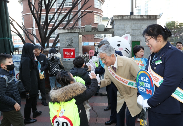 참석자들은 등교하는 학생들을 따뜻하게 맞이하며 보행 안전 수칙을 안내했다.