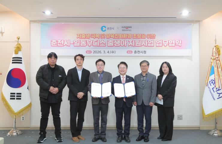 춘천시는 이날 시청 접견실에서 일동후디스와 '출생아 지원사업'을 위한 업무협약(MOU)을 체결했다.