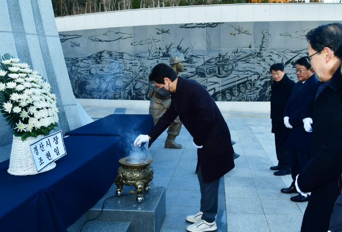 조현일 경산시장은 참배를 통해 "보훈 정신을 가슴 깊이 새기고, 병오년 붉은 말의 강인한 기운을 받아 더 큰 행복, 새로운 경산의 미래를 열어가겠다"고 새로운 한해를 맞이하는 포부를 밝혔다.