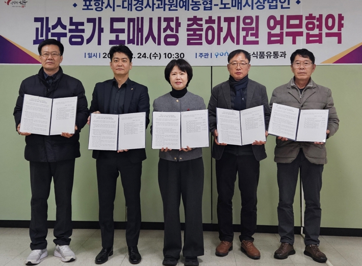 [뉴스앤톡] 포항시는 24일 포항시 농산물 도매시장에서 2026년 신규사업인 ‘과수농가 도매시장 출하지원사업’의 원활한 추진을 위한 업무협약(MOU)을 체결했다.