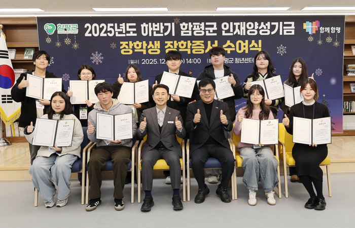 함평군은 25일 “‘2025년 하반기 함평군 인재양성기금 장학생 장학증서 수여식’이 지난 24일 함평군 청년센터에서 개최됐다”고 밝혔다.