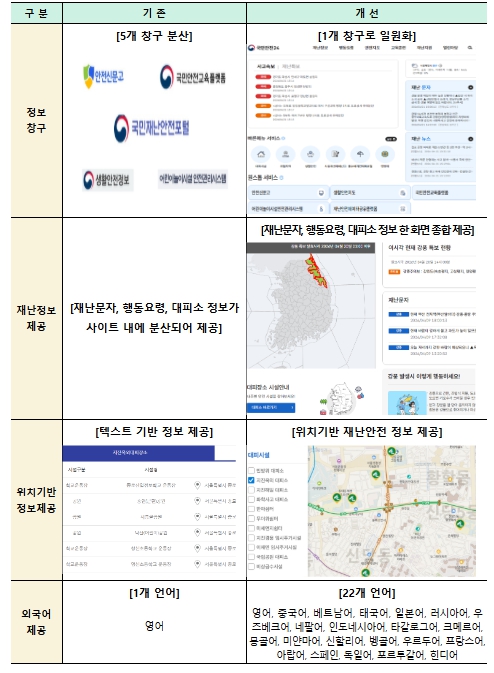 | ▲ ‘국민안전24’개편 사항 |