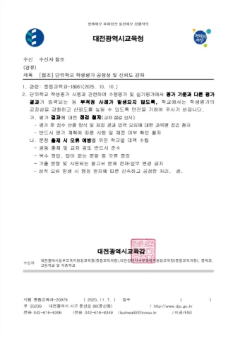 [뉴스앤톡] 대전시교육청은 11월 7일 단위학교의 수행평가 및 실기평가 관련 공정성을 강화하도록 전 학교에 긴급 안내했다고 밝혔다.