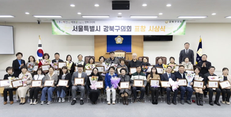 [뉴스앤톡] 강북구의회는 지난 2월 27일 본회의장에서 평소 헌신적인 봉사와 나눔으로 지역사회 발전에 기여한 모범 구민 35명에게 의장 표창장을 수여했다.