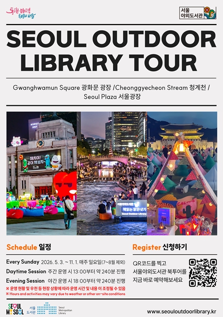 5월부터는 외국인 관광객을 대상으로 ‘서울야외도서관 투어(Seoul Outdoor Library Tour)’를 본격 추진한다. 서울야외도서관 3개 거점을 연결한 체험형 콘텐츠로, 도보로 이동하며 각 공간의 특색을 살린 독서 콘텐츠를 경험할 수 있도록 구성됐다.