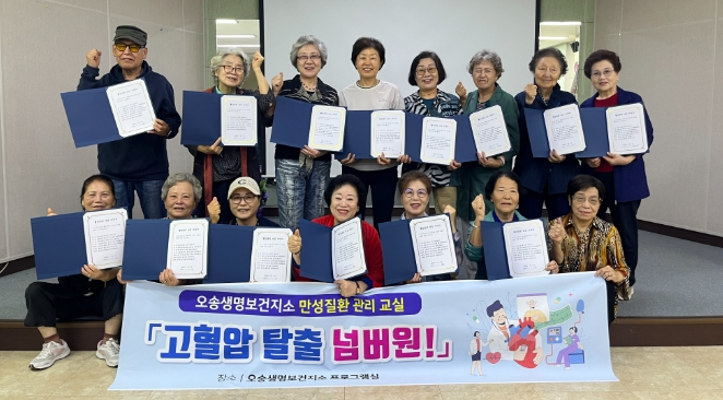 [뉴스앤톡] 청주시 흥덕보건소는 30일 오송생명과학단지 건강증진형 보건지소에서 지역 주민의 고혈압 예방과 자가건강관리 능력 향상을 위한 ‘고혈압 탈출 넘버원!’ 프로그램이 성황리에 마무리했다.