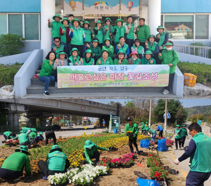 [뉴스앤톡] 마장면 새마을남·녀지도자협의회(회장 지윤정, 이희자)는 4월 18일) 새봄맞이 아름 다운 마을 가꾸기를 위하여 관내 도로변 및 쌈지공원 등에 계절 페츄니아, 메리골드, 마가렛 등의 봄꽃묘를 식재하며 마을 곳곳에 생기를 더했다. 또한, 덕평로, 오천로 등 주요 대로변을 중심으로 가로화분 및 화단에 꽃을 식재하여 화사한 봄의 시작을 알렸다.