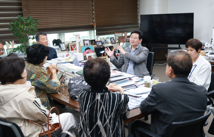 이 시장은 이날 시장실을 찾은 성동마을LG빌리지1차아파트 입주자대표회의 구자훈 회장 등 주민 9명과 대화했다.
