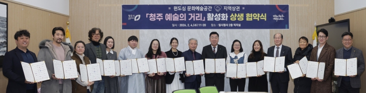 이범석 청주시장은 “이번 상생 협약은 예술인과 지역상권이 함께 성장하는 지속가능한 원도심 상생 모델의 모범 사례가 될 것”이라며 “앞으로도 문화예술을 통해 시민이 체감할 수 있는 다양한 변화를 만들어가도록 노력하겠다”고 말했다.