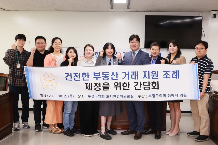 [뉴스앤톡] 인천 부평구의회 정예지 의원(더불어민주당 비례)은 지난 10월 2일 부평구의회 도시환경위원회실에서 '인천광역시부평구 건전한 부동산 거래 지원 조례'제정을 위한 간담회를 개최했다.