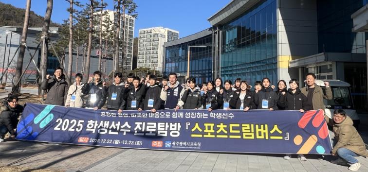 [뉴스앤톡] 광주시교육청은 22~23일 광주체육중학교 학생 선수 20명이 참여한 가운데 ‘2025 학생선수 진로탐방 스포츠 드림버스’를 운영했다.