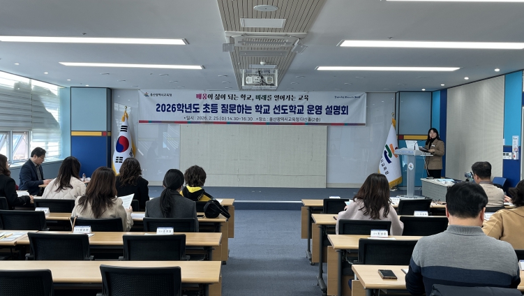 울산교육청은 25일 다산홀에서 선도학교 관리자와 담당 교원을 대상으로 운영 설명회를 열고, 세부 실천 전략과 학교 간 협력 방안을 논의했다.