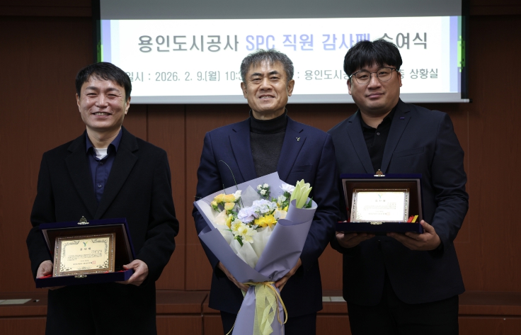이번 감사패 전달식은 용인시 처인구 원삼면과 이동읍 일대의 사업 현장에서 묵묵히 실무를 수행하며, ‘용인 반도체 클러스터 조성 및 소부장(소재·부품·장비) 기업 유치’라는 목표 달성에 기여한 SPC 직원들의노고를 격려하기 위해 마련됐다.