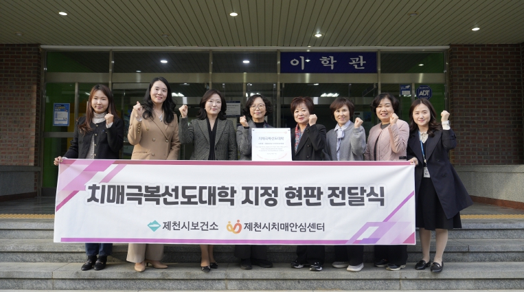 [뉴스앤톡] 제천시 치매안심센터는 지난 30일 세명대 보건바이오대학을 제천시 1호‘치매극복선도대학’으로 신규 지정하고 현판 전달식을 진행 했다고 밝혔다.