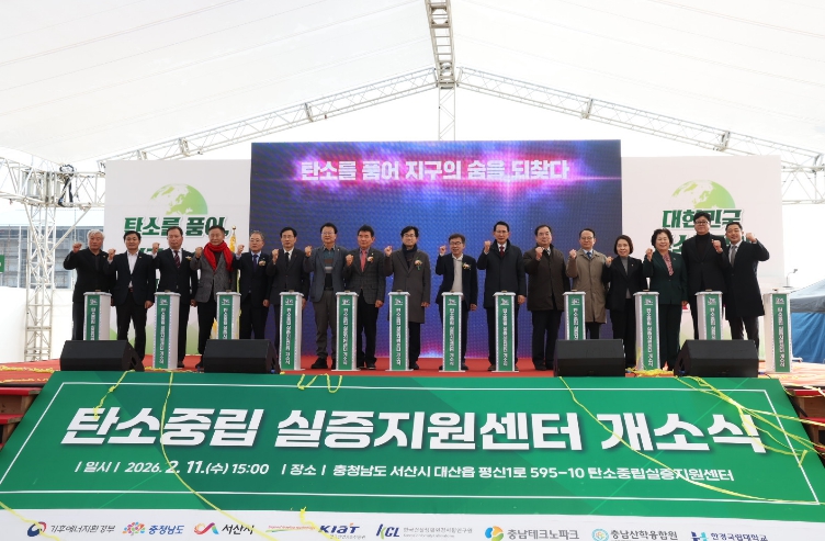 [뉴스앤톡] 충남도는 11일 서산 대산석유화학단지에서 탄소중립 실증지원센터 개소식을 열고, 탄소중립 기술 실증 및 산업 전환 기반 구축을 위한 본격적인 운영에 돌입했다.