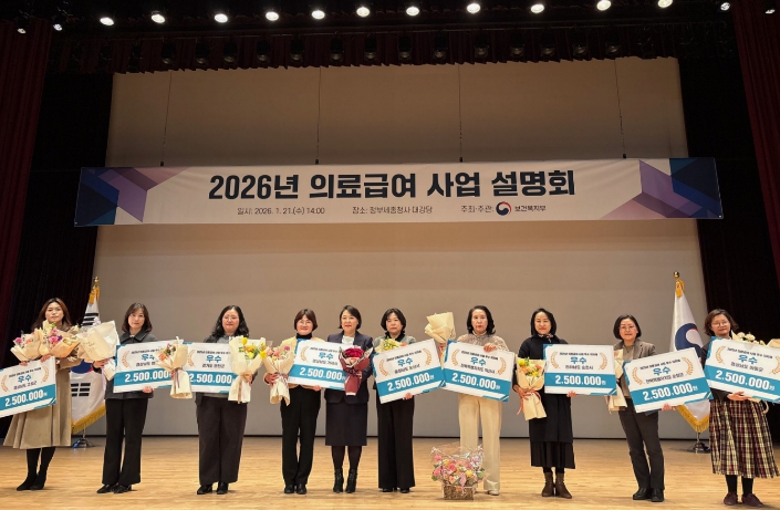 21일 정부세종청사에서 개최된 ‘2026년 의료급여 사업 설명회’에서 보건복지부, 시·도, 시·군·구, 건강보험공단, 건강보험심사평가원, 사회보장정보원 등 약560명이 참석하여 시상식을 진행했다.