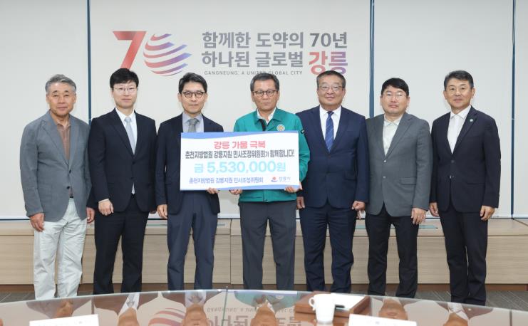 [뉴스앤톡] 춘천지방법원 강릉지원은 17일 강릉시청을 찾아 강릉지원 직원들과 민사조정위원회 위원들이 십시일반하여 모은 성금 5,530,000원을 전달했다.