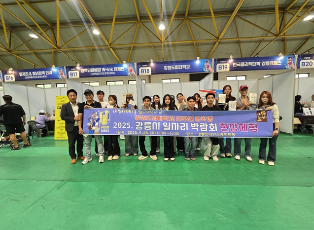 [뉴스앤톡] 강원도립대학교는 9월 25일 강릉시에서 열린 '2025 강릉시 일자리 박람회'에 재학 중인 외국인 유학생 19명과 함께 참여했다.