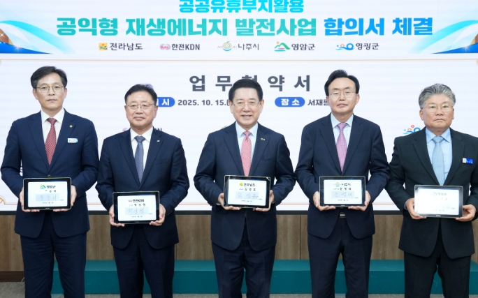 [뉴스앤톡] 전라남도는 15일 새정부의 재생에너지 대전환 기조와 재생에너지 보급 확대 정책에 따라 나주시, 영광군, 영암군, 한전KDN과 탄소중립 실현·에너지 기본소득 실현을 위한 ‘공익형 재생에너지 발전사업’ 업무협약을 했다고 밝혔다.