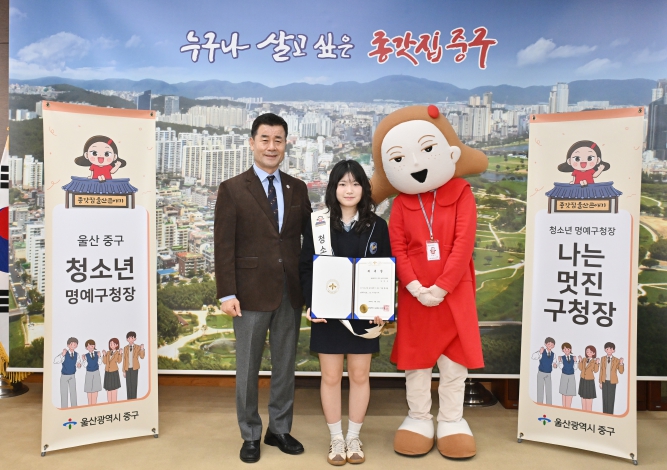 [뉴스앤톡] 울산 중구가 2월 24일 성신고등학교 1학년 김하은 학생을 ‘1일 청소년 명예구청장’으로 위촉했다.