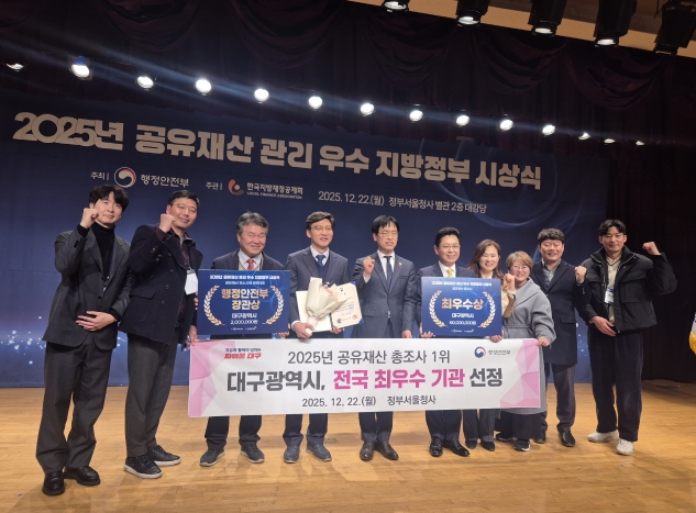 [뉴스앤톡] 대구광역시는 12월 22일 행정안전부 주최 ‘2025년 공유재산 우수 지방자치단체 시상식’에서 공유재산 총조사 부문 최우수 기관 선정과 더불어, 공유재산 우수사례 경진대회에서 우수상(장관상)을 수상하는 등 공유재산 관리와 활용 분야에서 최고 수준의 역량을 입증했다.