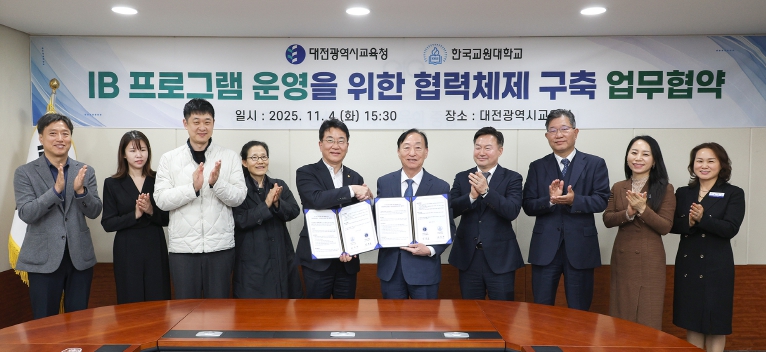 [뉴스앤톡] 대전시교육청은 11월 4일 본관 6층 중회의실에서 한국교원대학교와 IB 프로그램 운영을 위한 협력체제 구축 업무협약을 체결했다고 밝혔다.