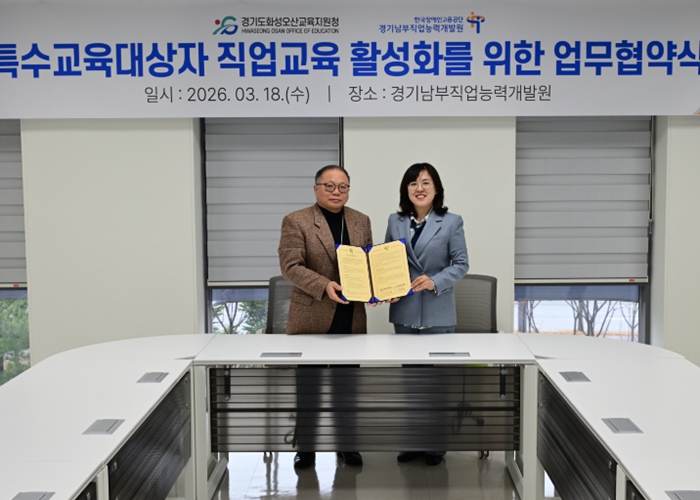 [뉴스앤톡] 경기도화성오산교육지원청이 특수교육대상 학생들의 진로직업교육 강화를 위해 한국장애인고용공단 경기남부직업능력개발원과 협력에 나선다.