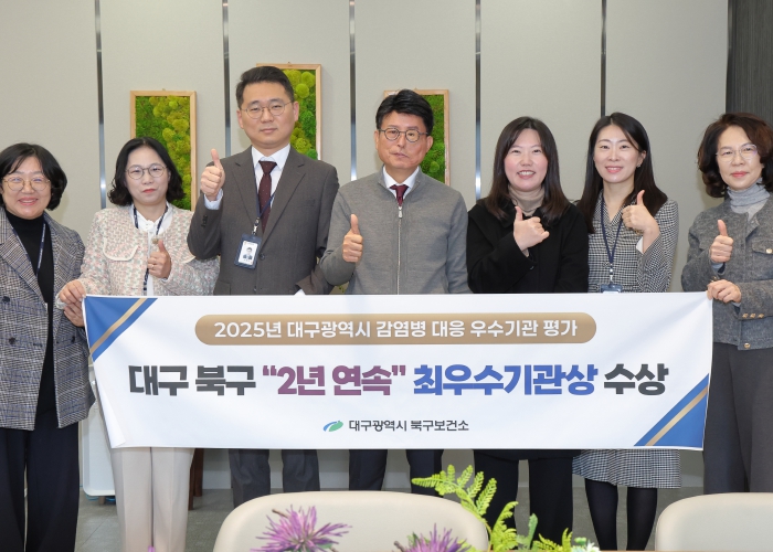 [뉴스앤톡] 대구 북구보건소는 대구광역시가 주관하는 '2025년 대구광역시 감염병 대응 우수기관'평가에서 2024년에 이어 2025년에도‘2년 연속 최우수기관’으로 선정되는 쾌거를 달성했다.