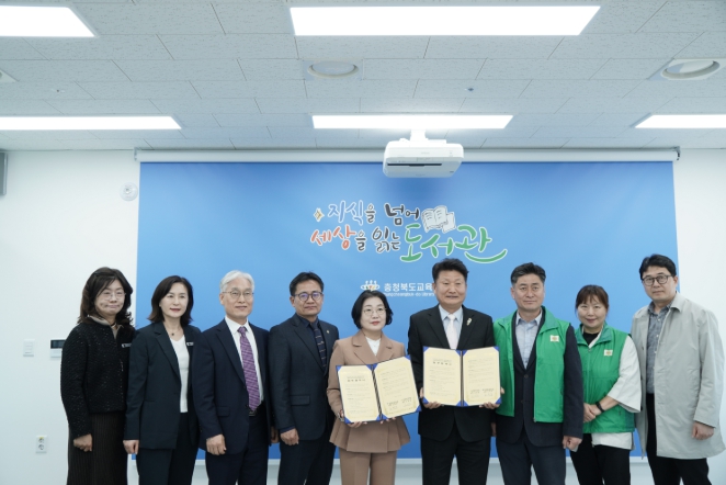 [뉴스앤톡] 충청북도교육청 직속기관 교육도서관(관장 노재경)은 25일 오후 2시, 도서관 5층 영상회의실에서 새마을문고중앙회 청주시지부(회장 김대형)와 지역사회 독서문화 활성화를 위한 업무협약(MOU)을 체결했다.