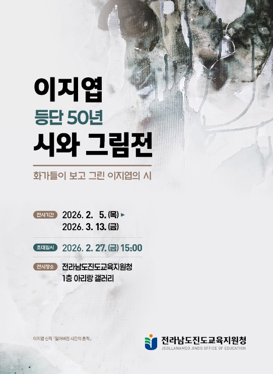 [뉴스앤톡] 전라남도진도교육지원청은 2월 5일부터 3월 13일까지 아리랑 갤러리에서 이지엽 시인 등단 50년을 기념하는 『시와 그림展』을 개최한다.