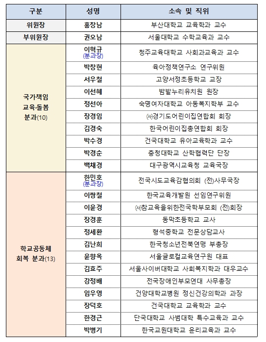 | ▲ 교육부 정책자문위원회 위원 명단 |