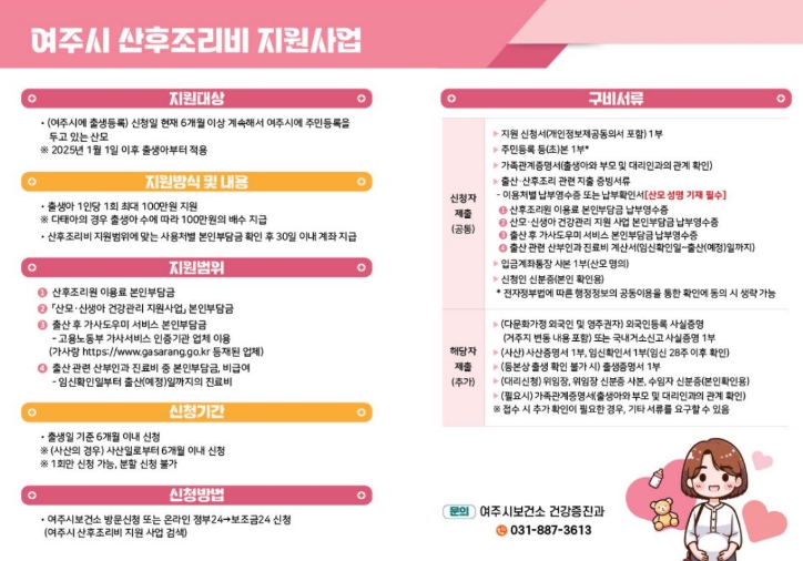 | ▲ 여주시, 2025년 산후조리비 지원사업 안정적 운영 |